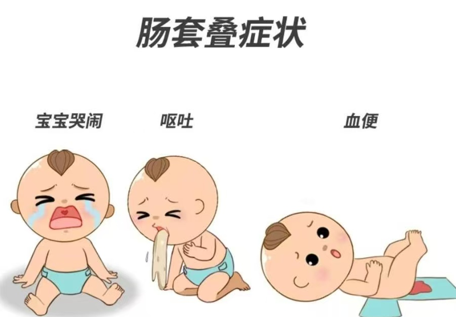常见症状包括:患儿阵发性哭闹或腹痛、呕吐、便血(果酱样粘液血便)。