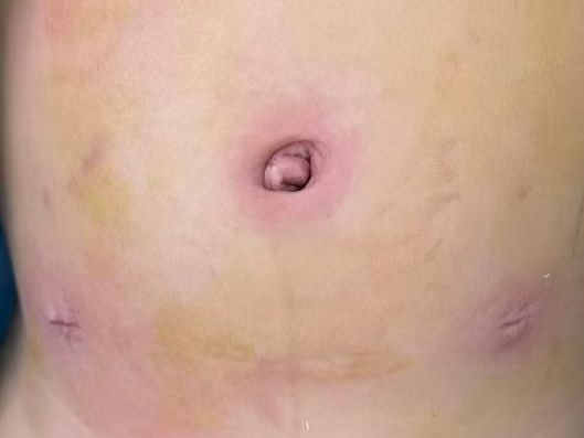 与家属沟通后,医护团队决定采用腹腔镜的方式,尽可能以最小的创伤为患儿解决问题。家属积极配合,签字手术,在最短的时间内患儿送入手术室。术中探查到末端回肠有4-5cm套入结肠,并成功在腔镜下复位小肠,患儿恢复良好,术后5天顺利出院。